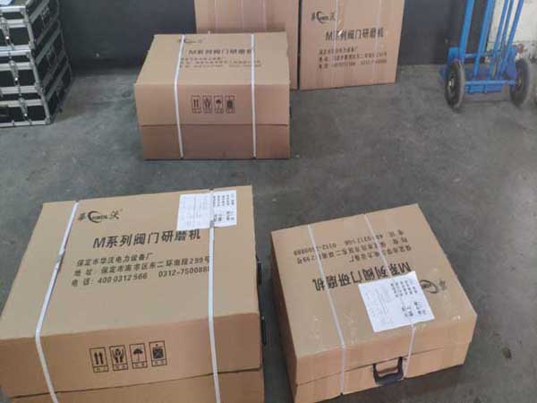 一臺M600型、一臺M300型便攜式多功能閥門研磨機和一臺M100型截止閥閥門研磨機準備發貨發往某工程公司;發貨現場附圖如下。