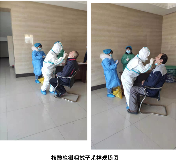 檢測采樣現場,醫務人員身著防護服,嚴格按照要求進行采樣;公司每一位員工都佩戴口罩,分散站位,有序進行檢測采樣。
